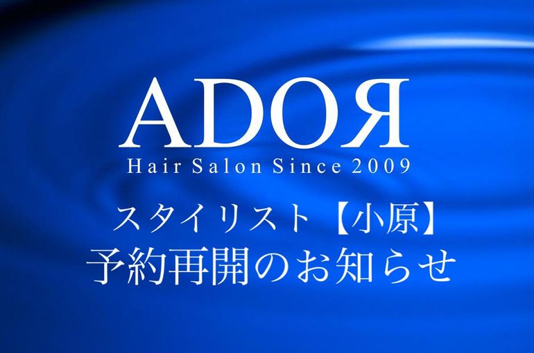 今回は「スタイリスト【小原】予約再開のお知らせ」についてご案内させて頂きました。